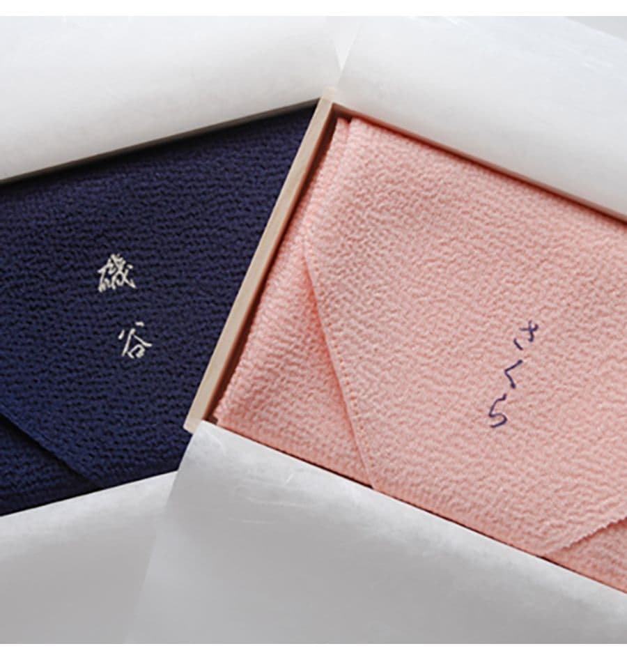 贈答はモノそのものを贈ることではなく、モノを介して気持ちを伝えることだと考えています。袱紗や風呂敷では「何故そのお色を選んだか」も贈る気持ちを伝えるメッセージとなります。その色から連想されるイメージや、季節のこと、その色と自分の関わり・・「自分が好きな色だから」でもいいと思います。そんな一言が品物と相手の距離を縮め、贈る気持ちが伝わります。(本文は120文字程度をお知らせ頂ければこちらでカードにレイアウトさせて頂きます。
