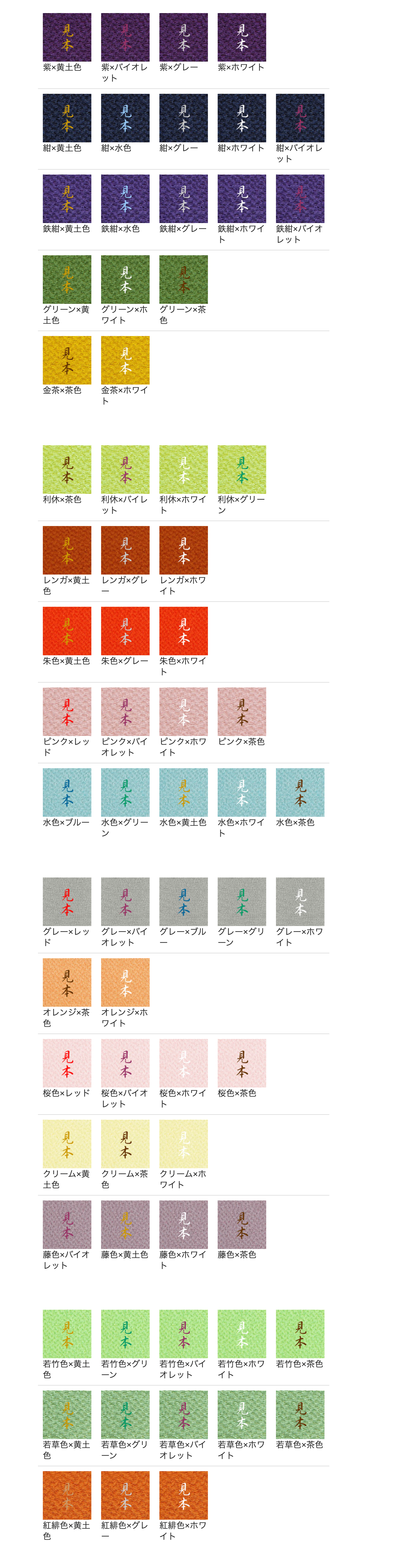 以下は生地のお色と名入れの組み合わせ例です。